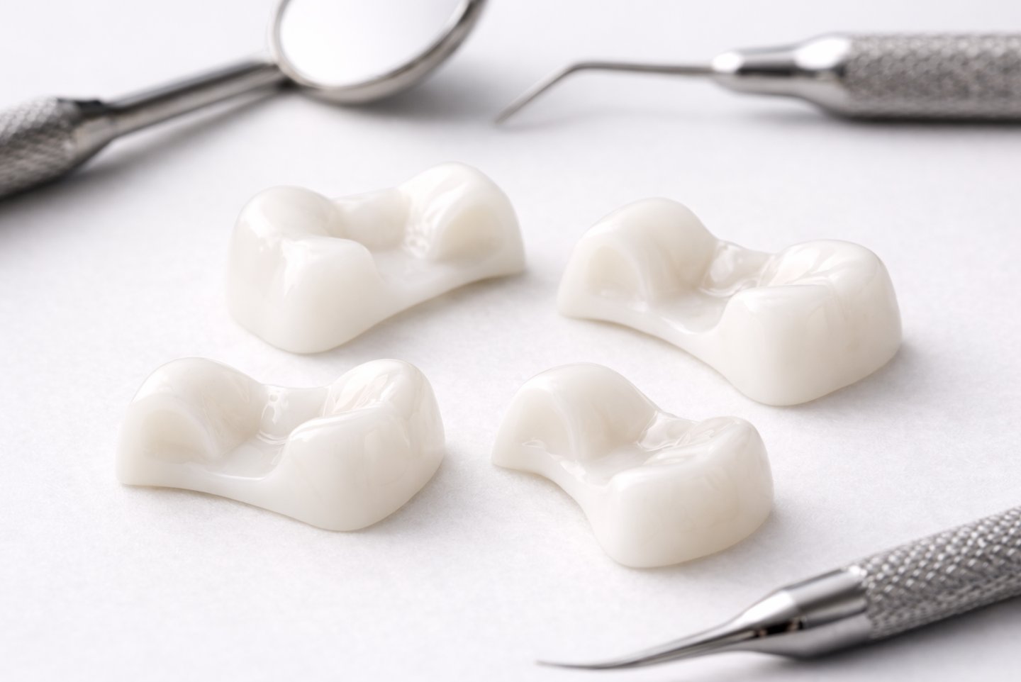 Laboratory-fabricated restorations used when damage extends beyond what a filling can support but does not require full crown coverage. Designed for precise fit and durability.